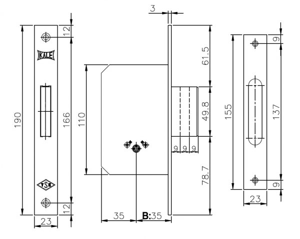 Замок врезной Kale-kilit 189 F01